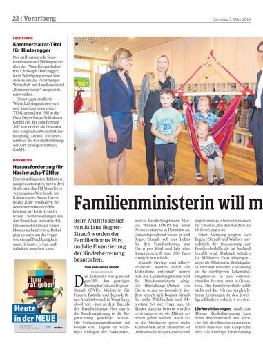 Beim Antrittsbesuch von Juliane Bogner-Strauß wurden der Familienbonus Plus, und die Finanzierung der Kinderbetreuung besprochen.