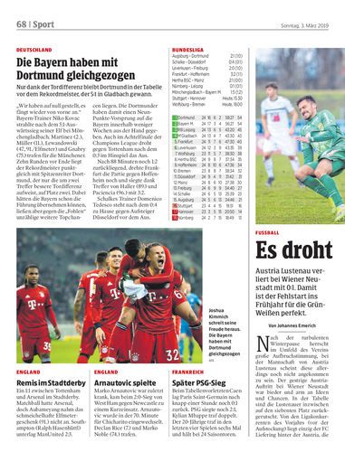 Nur dank der Tordifferenz bleibt Dortmund in der Tabelle vor dem Rekordmeister, der 5:1 in Gladbach gewann.