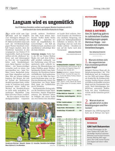 Der FC Mohren Dornbirn verliert auch gegen Wacker Innsbruck mit 0:4