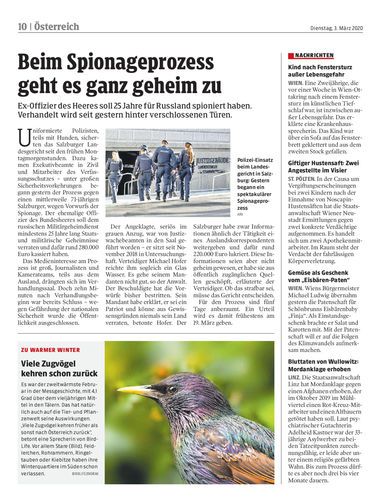 Ex-Offizier des Heeres soll 25 Jahre für Russland spioniert haben. Verhandelt wird seit gestern hinter verschlossenen Türen.