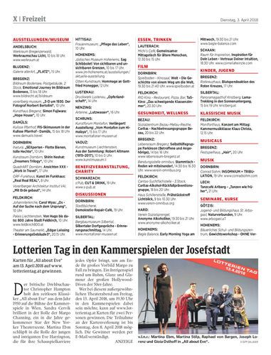 Die Artenne Nenzing startet 2018 mit der Schau „Lutzwasser“. Im Juli wird die Klausur „Objet trouvé“ fortgesetzt.