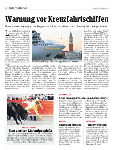 Unesco warnt vor negativen Folgen durch Kreuzfahrttourismus. Venedig ist stark gefährdet.