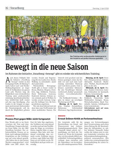 Im Rahmen der Initiative „Vorarlberg >>bewegt“ gibt es wieder ein wöchentliches Training.