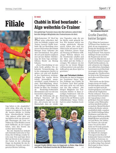 Chabbi in Ried beurlaubt – Alge weiterhin Co-Trainer