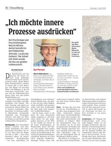 Der Psychologe und Psychotherapeut Martin Mittendorfer betreibt in der Feldkircher Altstadt „La piccola Galleria“. Die Arbeit mit Stein wurde für ihn zur großen Leidenschaft.