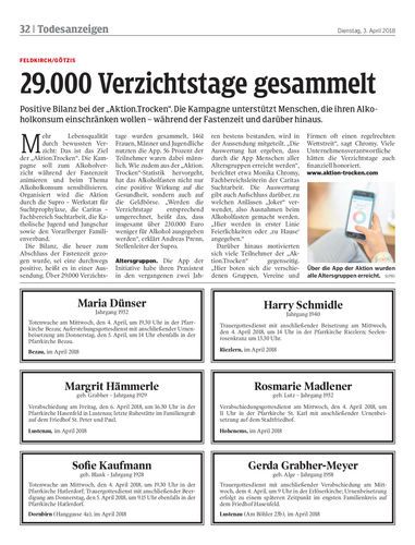 Positive Bilanz bei der „Aktion.Trocken“. Die Kampagne unterstützt Menschen, die ihren Alkoholkonsum einschränken wollen – während der Fastenzeit und darüber hinaus.