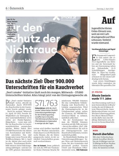 „Don’t smoke“-Initiative läuft noch bis morgen, Mittwoch – 571.000 Unterschriften bisher. Alles hängt jetzt von der Eintragungswoche ab.