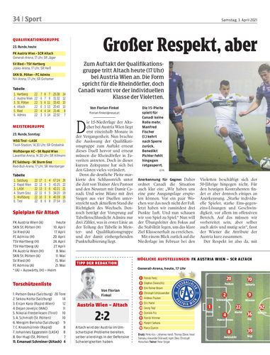 Zum Auftakt der Qualifikationsgruppe tritt Altach heute (17 Uhr) bei Austria Wien an. Die Form spricht für die Rheindörfler, doch Canadi warnt vor der individuellen Klasse der Violetten.