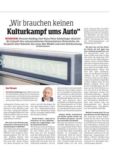 Porsche-Holding-Chef Hans Peter Schützinger skizziert die Zukunft des umsatzstärksten Unternehmens Österreichs: ein Gespräch über Rekorde, das neue Abo-Modell und eine Enttäuschung. Von Didi Hubmann