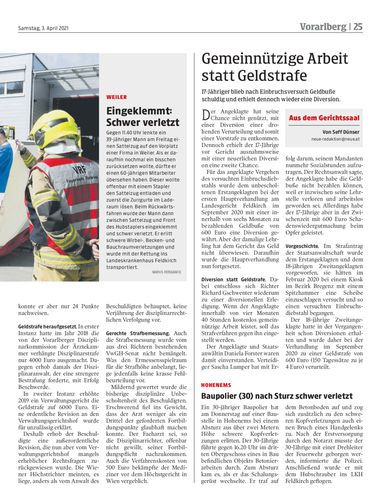 17-Jähriger blieb nach Einbruchsversuch Geldbuße schuldig und erhielt dennoch wieder eine Diversion.