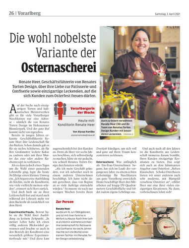 Renate Heer, Geschäftsführerin von Renates Torten Design, über ihre Liebe zur Patisserie und Confiserie sowie einzigartige Leckereien, auf die sich Kunden zum Osterfest freuen dürfen.