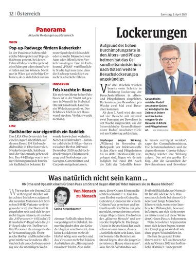 Aufgrund der hohen Durchimpfungsrate in den Alters- und Pflegeheimen hat das Gesundheitsministerium nach Ostern weitere Besuchslockerungen angekündigt.