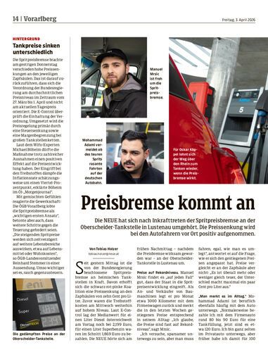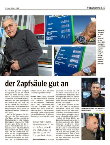 Die NEUE hat sich nach Inkrafttreten der Spritpreisbremse an der Oberscheider-Tankstelle in Lustenau umgehört. Die Preissenkung wird bei den Autofahrern vor Ort positiv aufgenommen.