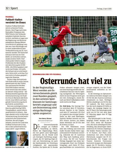 In der Regionalliga West werden am Osterwochenende gleich zwei Runden gespielt, in den unteren Spielklassen ist Samstagsbetrieb angesagt und am Ostermontag sind einige Nachtragsspiele angesetzt.