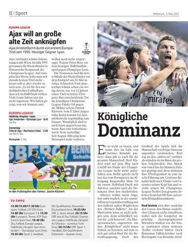 Ajax Amsterdam träumt von erstem Europa- Titel seit 1995. Heutiger Gegner: Lyon.