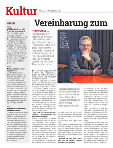 Interview. Anlässlich der Premiere des Stücks „Münchhausen“ sprechen die künstlerischen Leiter des Theater Kosmos, Augustin Jagg und Hubert Dragaschnig, über das Stück und ihr gemeinsames 20-jähriges Theater-Schaffen.