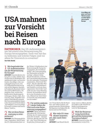 Faktencheck. Das US-Außenministerium hat erneut eine Reisewarnung für Europa herausgegeben. Doch was hat das zu bedeuten und welche Folgen sind vor allem für Österreich zu erwarten? Von Felix Steinle
