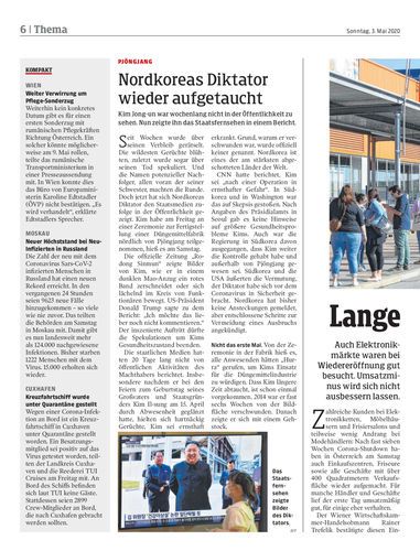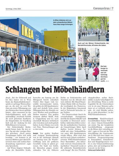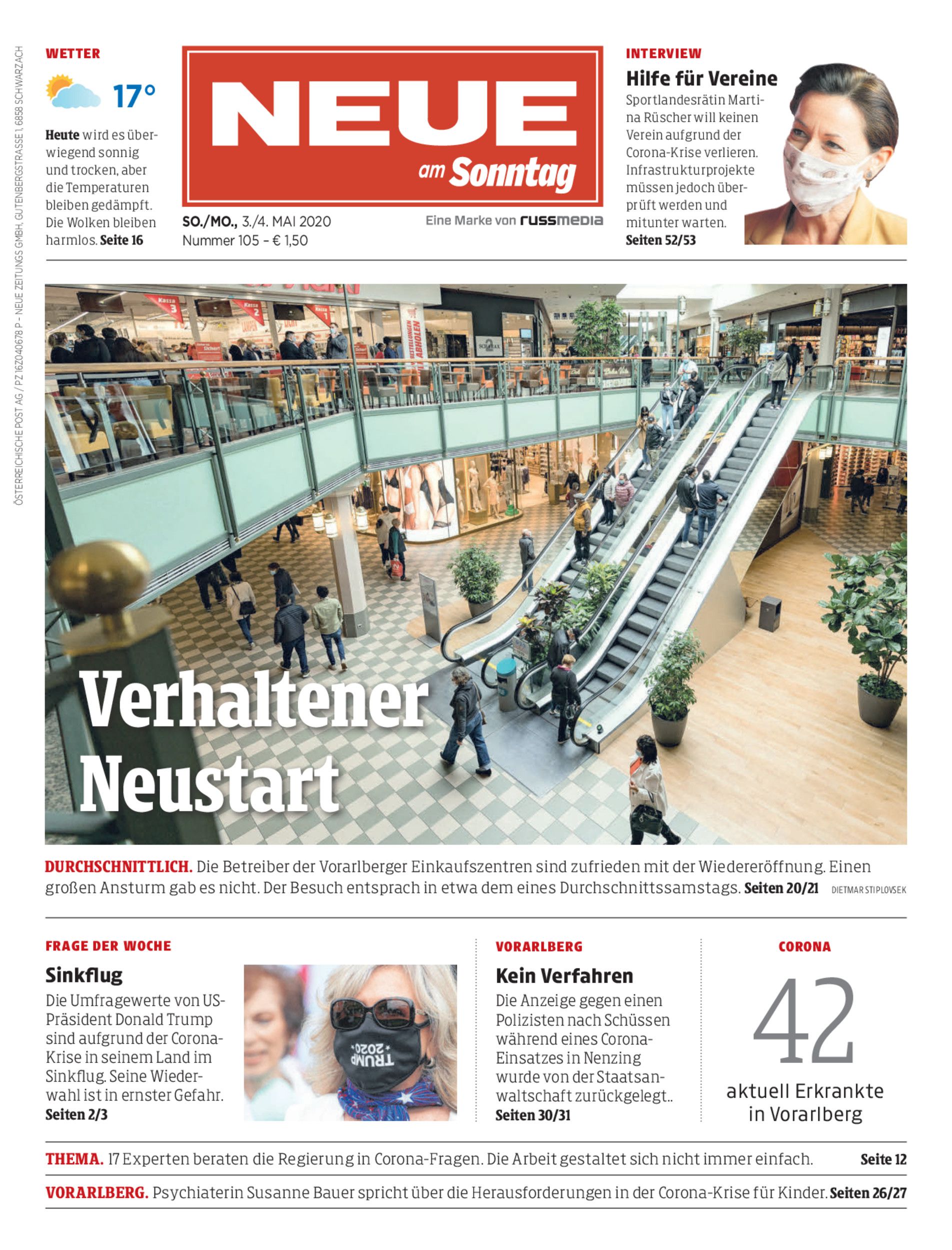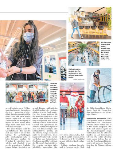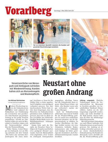 Durchschnittlich. Die Betreiber der Vorarlberger Einkaufszentren sind zufrieden mit der Wiedereröffnung. Einen großen Ansturm gab es nicht. Der Besuch entsprach in etwa dem eines Durchschnittssamstags. Seiten 20/21 Dietmar Stiplovsek