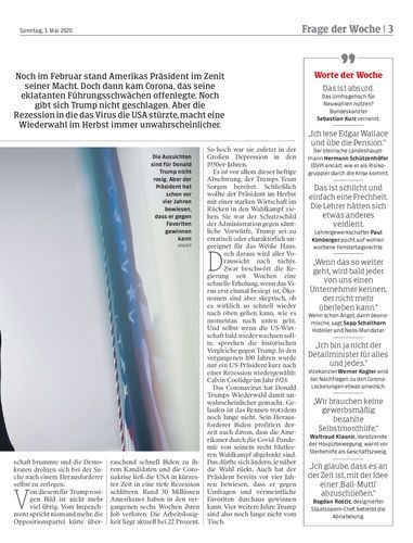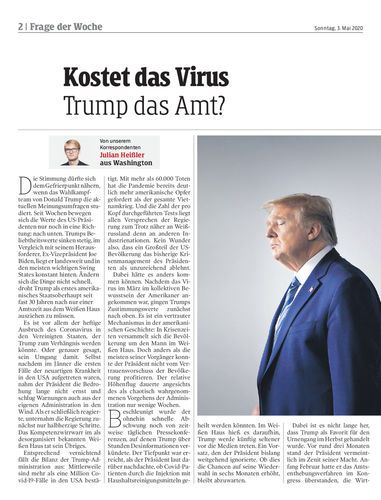 Noch im Februar stand Amerikas Präsident im Zenit seiner Macht. Doch dann kam Corona, das seine eklatanten Führungsschwächen offenlegte. Noch gibt sich Trump nicht geschlagen. Aber die Rezession in die das Virus die USA stürzte, macht eine Wiederwahl im Herbst immer unwahrscheinlicher.
