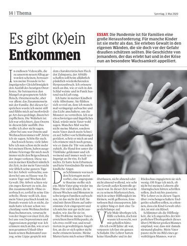 ESSAY. Die Pandemie ist für Familien eine große Herausforderung. Für manche Kinder ist sie mehr als das. Sie erleben Gewalt in den eigenen Wänden, die sie doch vor der Gefahr draußen schützen sollten. Die Geschichte von jemandem, der das erlebt hat und in der Krise nun an besondere Wachsamkeit appelliert.