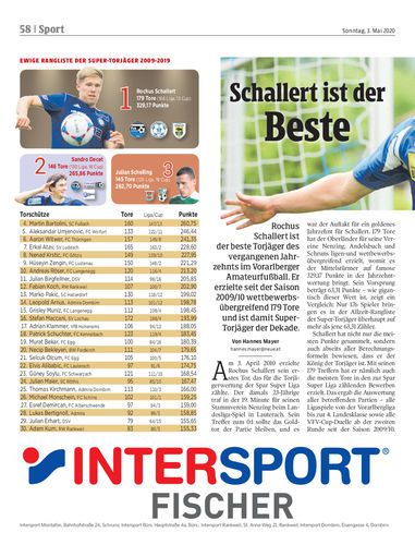 Rochus Schallert ist der beste Torjäger des vergangenen Jahrzehnts im Vorarlberger Amateurfußball. Er erzielte seit der Saison 2009/10 wettbewerbsübergreifend 179 Tore und ist damit Super-Torjäger der Dekade.