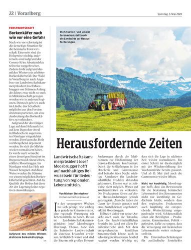 Landwirtschaftskammerpräsident Josef Moosbrugger hofft auf nachhaltiges Bewusstsein für Bedeutung von regionalen Lebensmitteln.