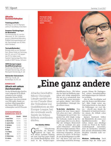 Altachs Geschäftsführer Christoph Längle sprüht nur so vor Freude über die Teilnahme zur Qualifikation an der Europa-League, bei der erstmals auch Spiele im Schnabelholz stattfinden dürfen.