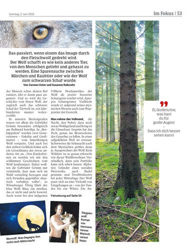 Das passiert, wenn einem das Image durch den Fleischwolf gedreht wird. Der Wolf schafft es wie kein anderes Tier, von den Menschen geliebt und gehasst zu werden. Eine Spurensuche zwischen Märchen und Raubtier oder wie der Wolf zum schwarzen Schaf wurde. Von Carmen Oster und Susanne Rakowitz