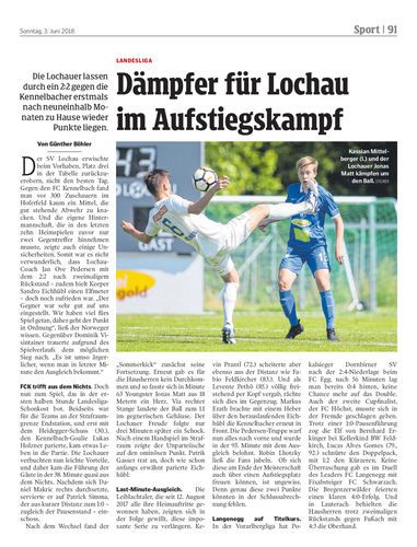 Die Lochauer lassen durch ein 2:2 gegen die Kennelbacher erstmals nach neuneinhalb Monaten zu Hause wieder Punkte liegen.