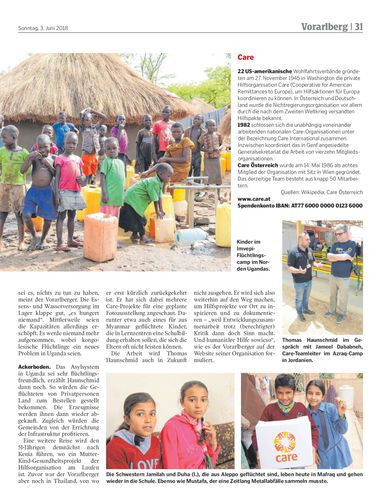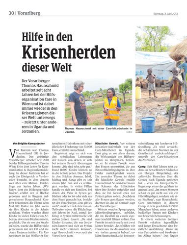 Der Vorarlberger Thomas Haunschmid arbeitet seit acht Jahren bei der Hilfsorganisation Care in Wien und ist dabei immer wieder in den Krisenregionen dieser Welt unterwegs – zuletzt unter anderem in Uganda und Jordanien.