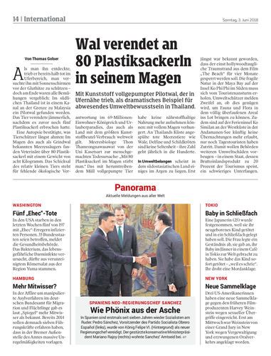 Wal verendet an 80 Plastiksackerln in seinem Magen