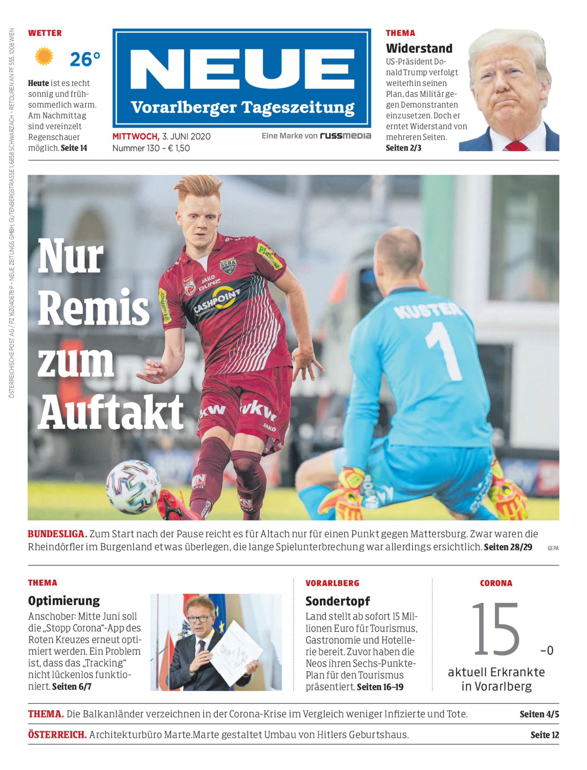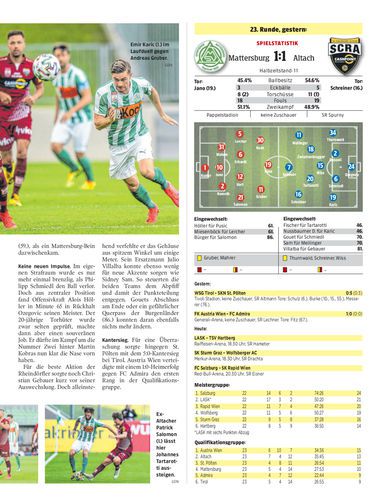 Bundesliga. Zum Start nach der Pause reicht es für Altach nur für einen Punkt gegen Mattersburg. Zwar waren die Rheindörfler im Burgenland etwas überlegen, die lange Spielunterbrechung war allerdings ersichtlich. Seiten 28/29 gepa