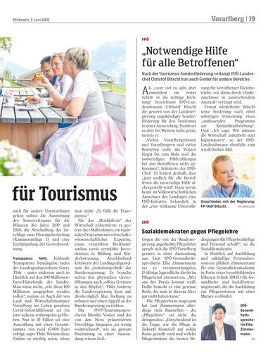 Nach der Tourismus-Sonderförderung verlangt FPÖ-Landeschef Christof Bitschi nun auch Gelder für andere Bereiche.