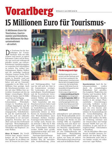 15 Millionen Euro für Tourismus, Gastronomie und Hotellerie, eine Millionen für Busunternehmen
