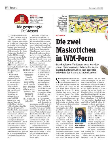 Star-Regisseur Valderrama und Kult-Tormann Higuita werden Kolumbien gegen England anfeuern. Bloß kein Eigentor schießen, das kann das Leben kosten.