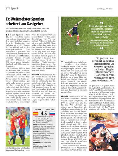 Im Achtelfinale ist für die Iberer Endstation. Russland gewinnt Elfmeterkrimi mit 4:3. Iniesta tritt zurück.