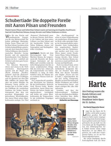 Pianist Aaron Pilsan und Cellist Kian Soltani waren am Samstag im Angelika-Kauffmann-Saal mit Uxia Martínez Botana, Georgy Kovalev und Tobias Feldmann zu hören.