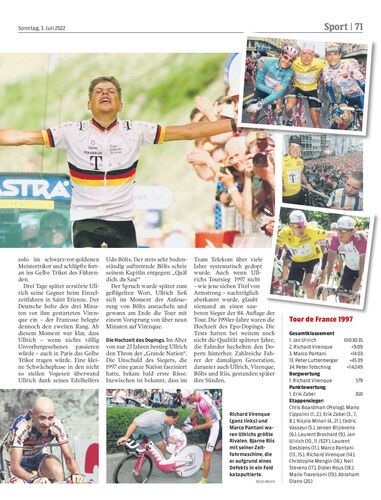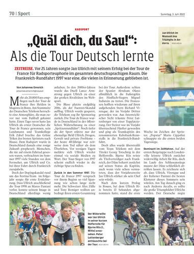 Zeitreise. Vor 25 Jahren sorgte Jan Ullrich mit seinem Erfolg bei der Tour de France für Radsporteuphorie im gesamten deutschsprachigen Raum. Die Frankreich-Rundfahrt 1997 war eine, die vielen in Erinnerung geblieben ist.