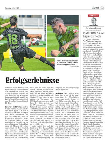 Austria Lustenau unterlag im ersten Testspiel im Reichshofstadion dem FC St. Gallen mit 0:4. Auch der SCR Altach verlor, beim FC Zürich mit 1:4.