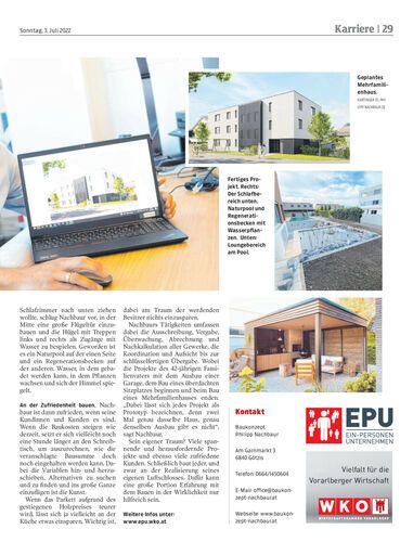 Baumeister Philipp Nachbaur (42) wohnt mit seiner Frau und seinen Kindern in Koblach. Er hat nicht nur das eigene Haus gebaut, sondern verhilft auch anderen dazu, ihr Bauprojekt zu verwirklichen. Träumen ist dabei ausdrücklich erwünscht.