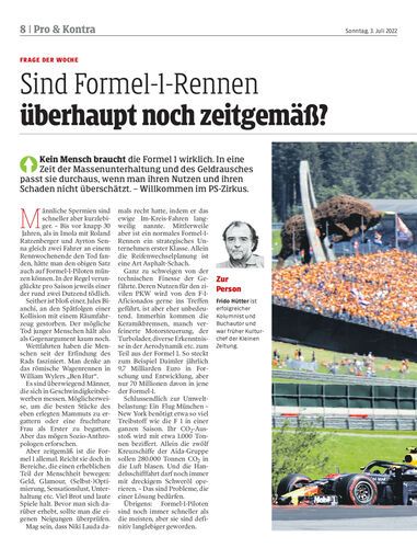 Kein Mensch braucht die Formel 1 wirklich. In eine Zeit der Massenunterhaltung und des Geldrausches passt sie durchaus, wenn man ihren Nutzen und ihren Schaden nicht überschätzt. – Willkommen im PS-Zirkus.