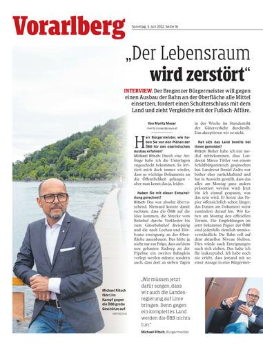 Interview. Der Bregenzer Bürgermeister will gegen einen Ausbau der Bahn an der Oberfläche alle Mittel einsetzen, fordert einen Schulterschluss mit dem Land und zieht Vergleiche mit der Fußach-Affäre.