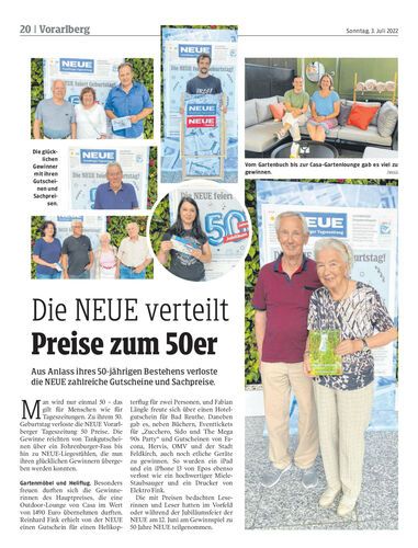 die NEUE zahlreiche Gutscheine und Sachpreise.