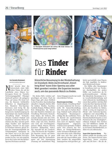Künstliche Besamung in der Rinderhaltung ist Standard. Beim Zuchtverband „Vorarlberg Rind“ kann Stier-Sperma aus aller Welt geordert werden. Die Experten beraten auch, um das passende Match zu finden.