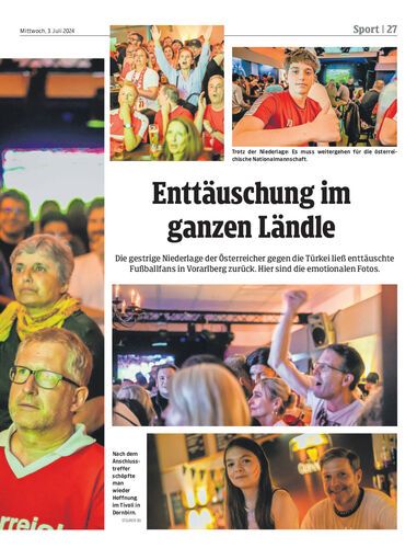 Die gestrige Niederlage der Österreicher gegen die Türkei ließ enttäuschte Fußballfans in Vorarlberg zurück. Hier sind die emotionalen Fotos.