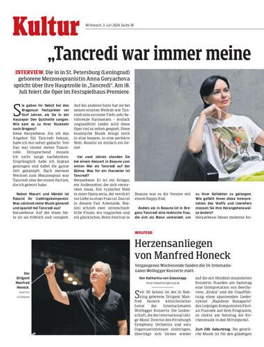 Interview. Die in in St. Petersburg (Leningrad) geborene Mezzosopranistin Anna Goryachova spricht über ihre Hauptrolle in „Tancredi“. Am 18. Juli feiert die Oper im Festspielhaus Premiere.