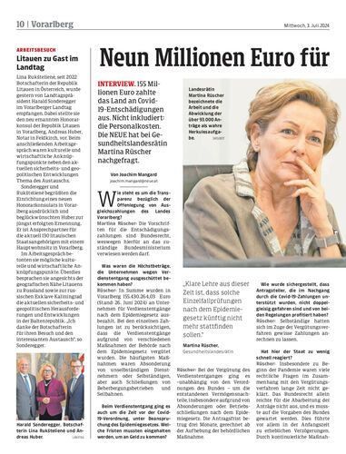 Interview. 155 Millionen Euro zahlte das Land an Covid-19-Entschädigungen aus. Nicht inkludiert: die Personalkosten. Die NEUE hat bei Gesundheitslandesrätin Martina Rüscher nachgefragt.