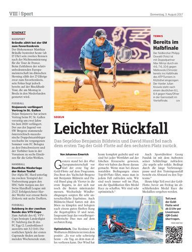 Das Segelduo Benjamin Bildstein und David Hussl fiel nach