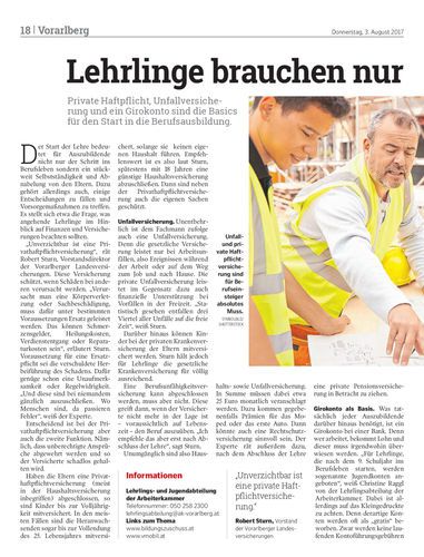 Private Haftpflicht, Unfallversicherung und ein Girokonto sind die Basics für den Start in die Berufsausbildung.