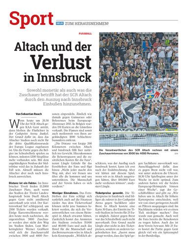 Sowohl monetär als auch was die Zuschauer betrifft hat der SCR Altach durch den Auszug nach Innsbruck Einbußen hinzunehmen.